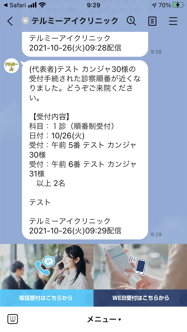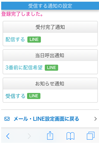 受付完了通知や当日呼出通知をLINEで受け取ることができます。