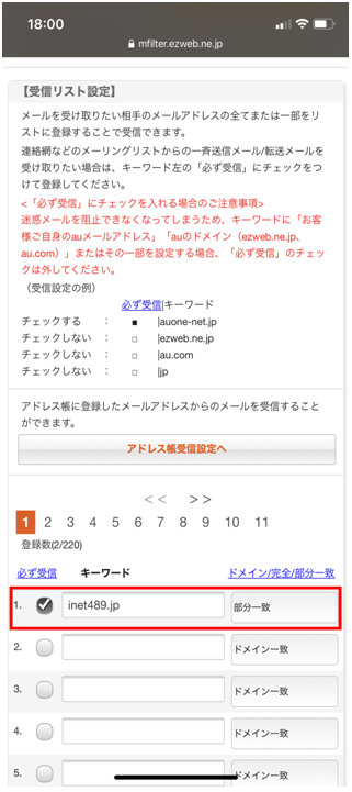 メールアドレスは最大3つまで登録可能です。nkmr8739@g.inet489.jpからのメールを受信可能にしてから登録してください。- メールアドレスを直接入力するか、空メールを送信し自動入力します。